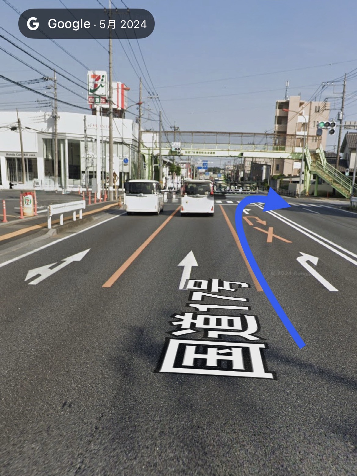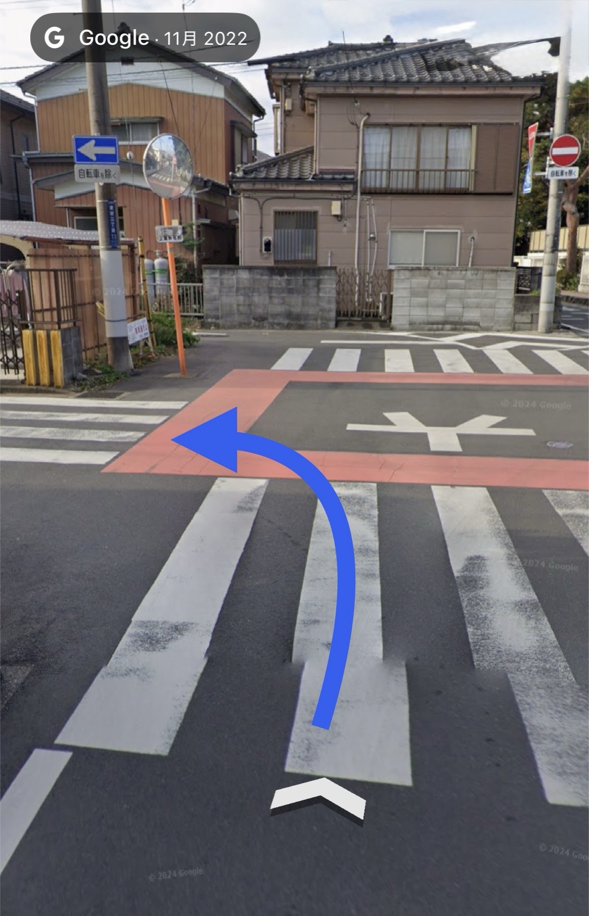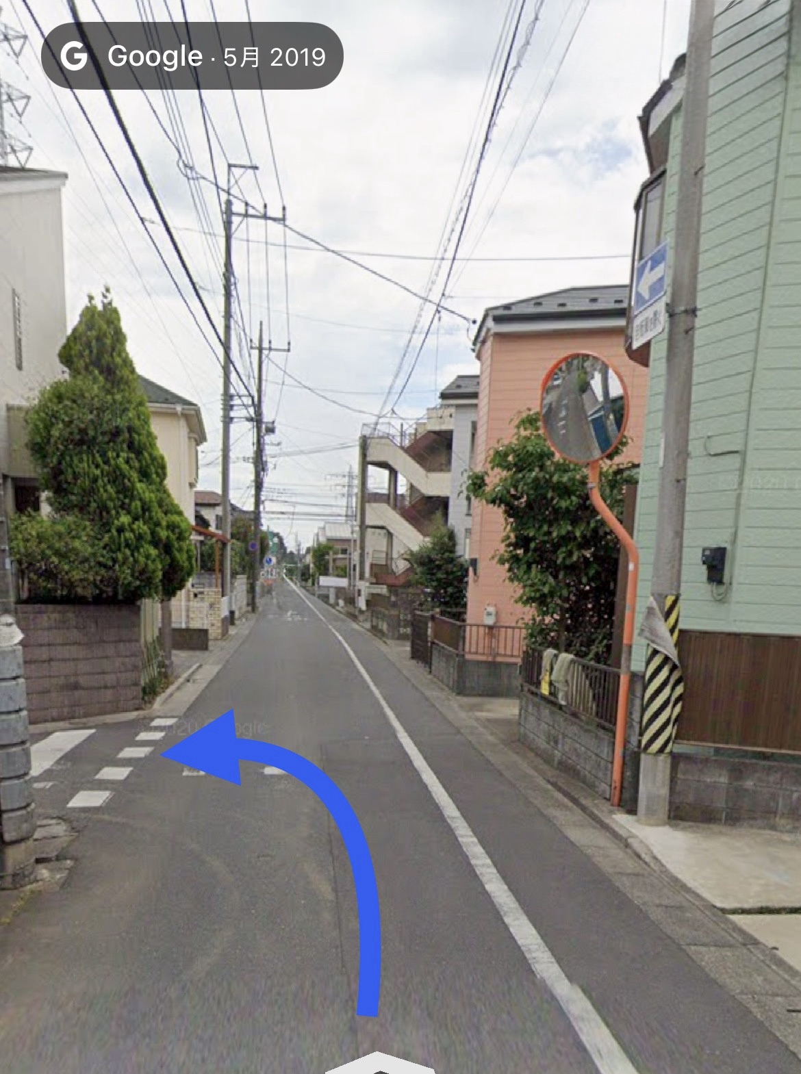 突き当たりの五叉路を左折し一方通行道路へ入ります。